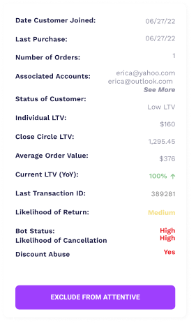 We make sense of the overwhelming amount of data by providing a clearer understanding of your actual customer. We remove bad actors and duplicate accounts that create a skewed view of your customers and data.