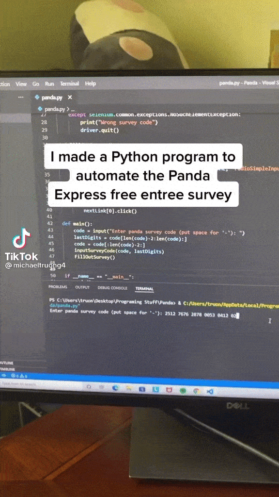 11. Orange Chicken & Panda Express: some genius, likely a college student tired of dining hall food, has automated the Panda Express free entry survey. It autofills the survey, and boom, within seconds, they have a free entry of orange chicken.