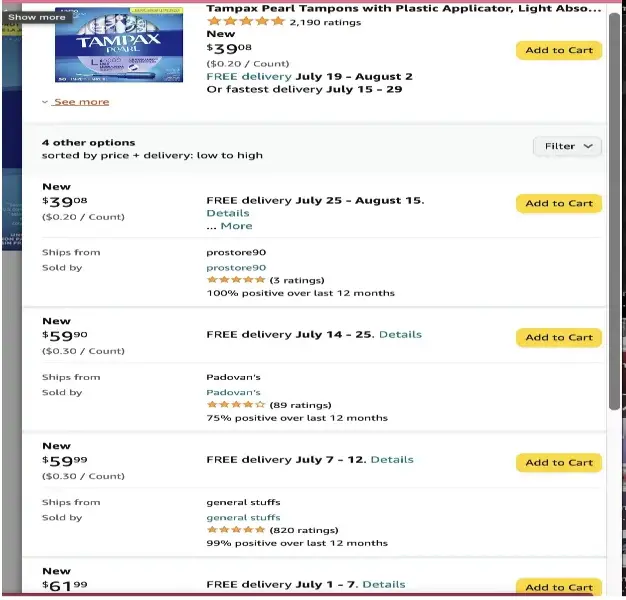 5. Tampoons: this shortage is not because Amy Schumer was featured in Tampax's marketing. Bad actors know women will pay beyond MSRP to get feminine products — an essential life necessity. Discord Groups are actively discussing how to arbitrage tampons by using HSA/FSA to get them for free, and it's an easy, low-risk flip. The newly adjusted cost of tampons is double the lifetime spent per menstruating individual.