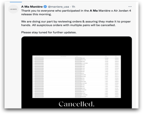 2. A Ma Maniere x Jordan 4: was an iconic release, as it needed to be released several times because of bots. The original release was swarmed by bots in seconds and created a Twitter storm. It was eventually successfully re-released but was one of the hottest pairs of 2022.