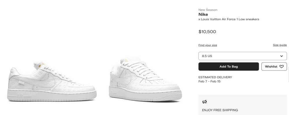2) LV x Off White AF1s: one of the most iconic releases of all time, as everyone was remembering the legendary Virgil Abloh. There was no expense spared with the Brooklyn Museum holding an exhibition, multiple exhibits around the world, and dominating the talk of the sneaker world. These shoes are now reselling for ~$10,500!