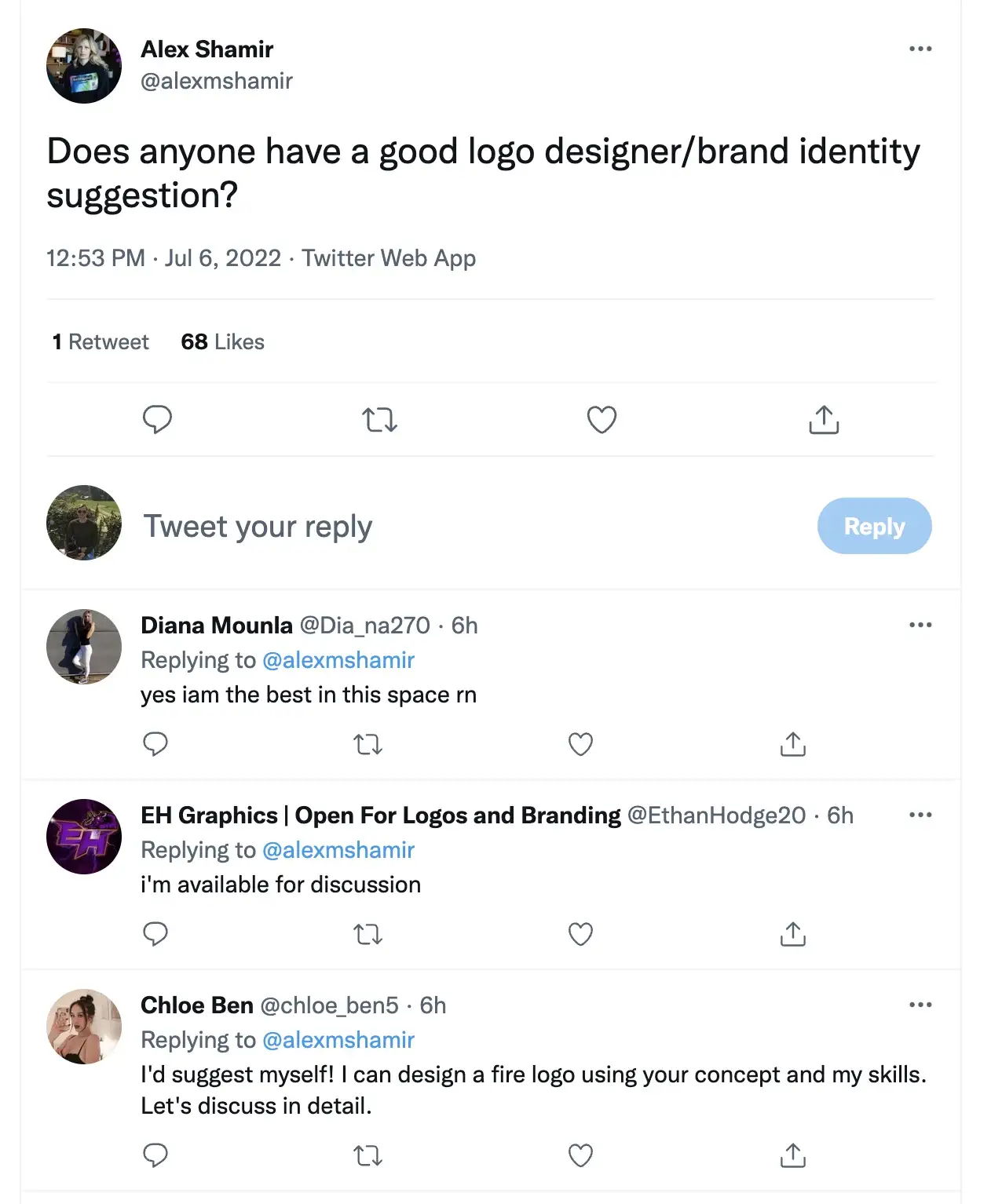 So, we turned to our internet friends on Twitter with a simple ask, “does anyone have a good logo designer/brand identity suggestion” and the shocked by the outcome. We thought we must have gone viral with all the notifications and assumed our hilarious content was finally being acknowledged.