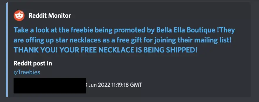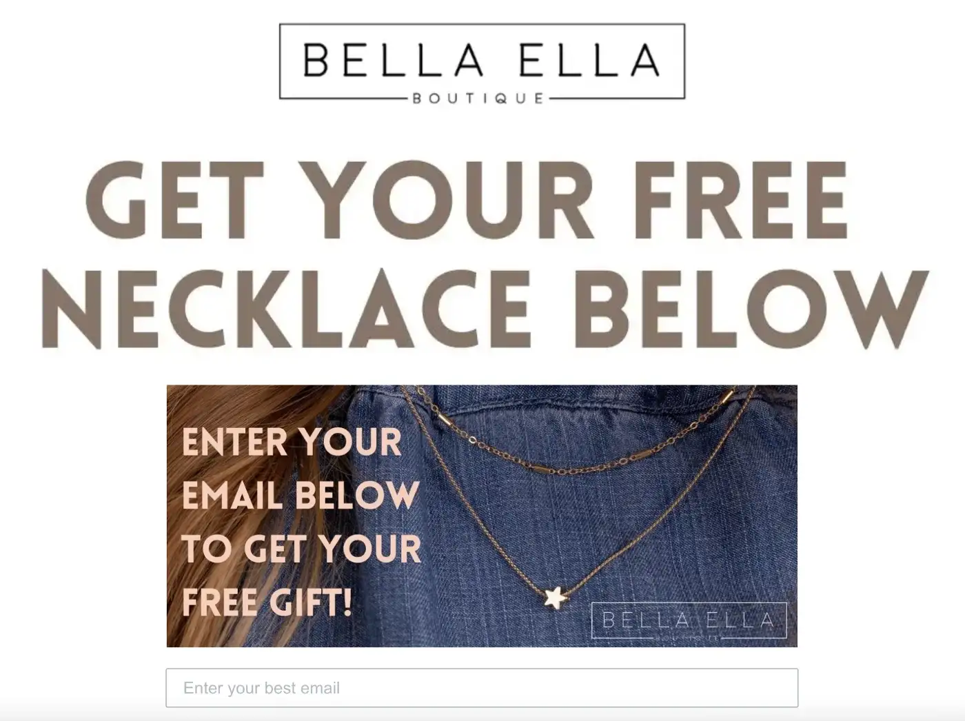 2. Bella Ella Boutique: was offering a free necklace if you signed up for their email list. They likely didn’t know that it got discovered and announced in Cook Groups, and people cannot resist free stuff. It is disappointing for the brand, as their promotion is likely being abused by individuals who has no intention ever purchasing another product.