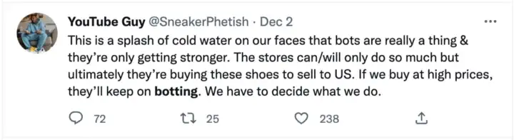 Removing Yeezy, one of the most desirable brands, has forced more scarcity and competition in the market for other products. This has caused the never-ending clash between sneakerheads and botters to become more prominent, as there is less supply to be won. Simultaneously, sneaker stores are struggling to replace a highly desirable and profitable brand.