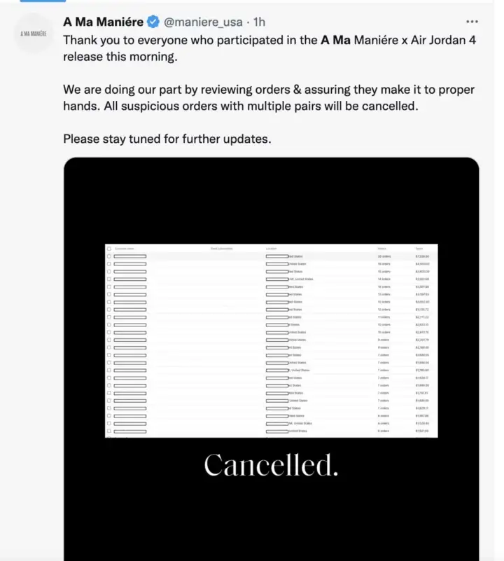 Identifying and preventing bots is extremely tedious and time-consuming, as brands spend many hours creatively crafting obstacles to trip up bots. If bots scope up an entire release, like what happened to A Ma Maniere and Concepts. It will take days to manually verify and cancel those orders — not mention the public outcry on social media!